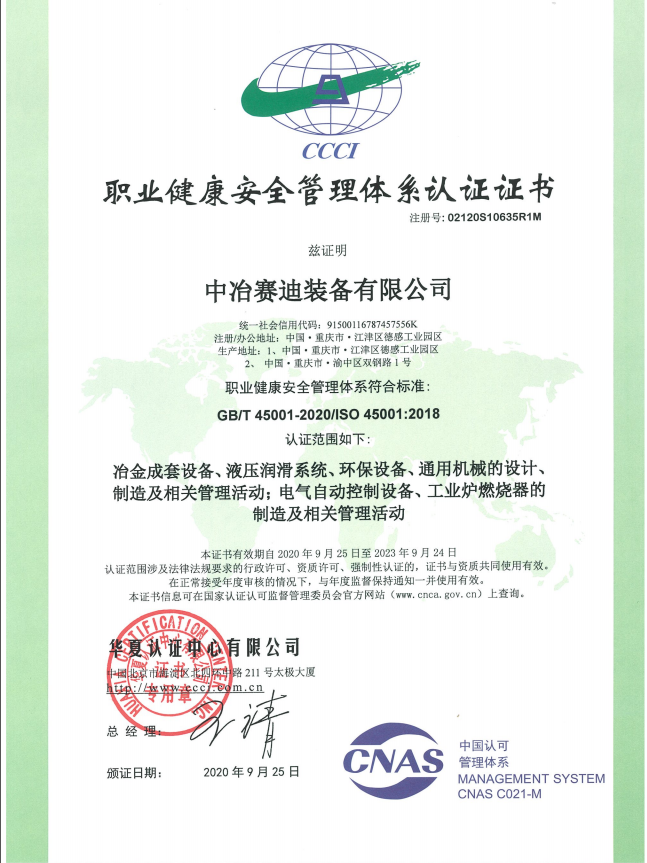 CNAS職業(yè)健康安全管理體系認(rèn)證證書